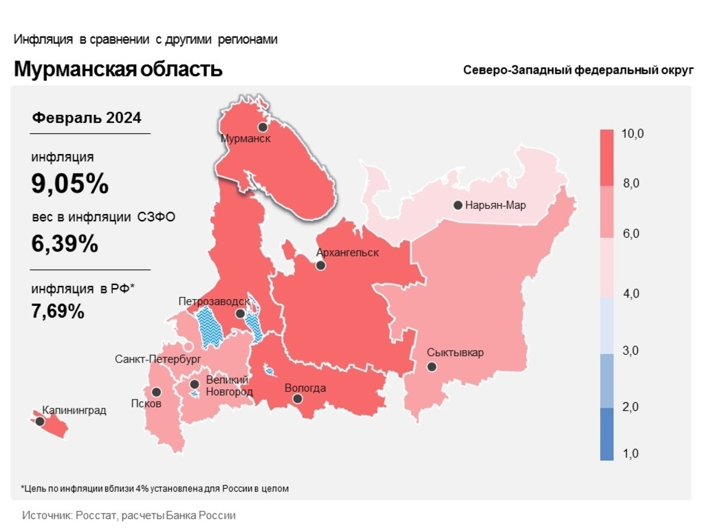 Отделение Банка России по Мурманской области: годовая инфляция в регионе в феврале осталась на уровне января