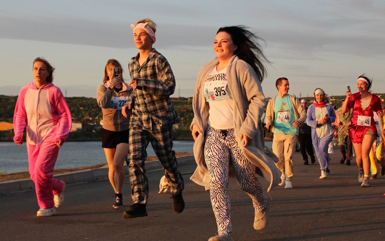 Завершился праздник в полночь легкоатлетическим забегом в пижамах и домашних костюмах.
