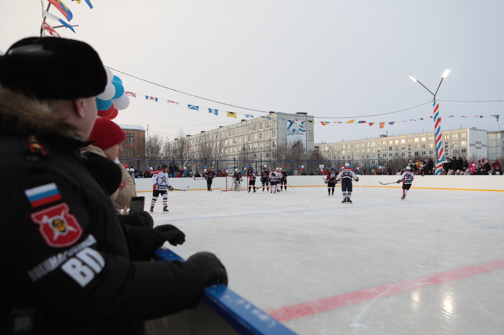 Символичным вбрасыванием шайбы был дан старт новому хоккейному сезону. На льду сразились команды Северного флота - подводных сил "Тайфун" и "Армеец" 14 армейского корпуса.