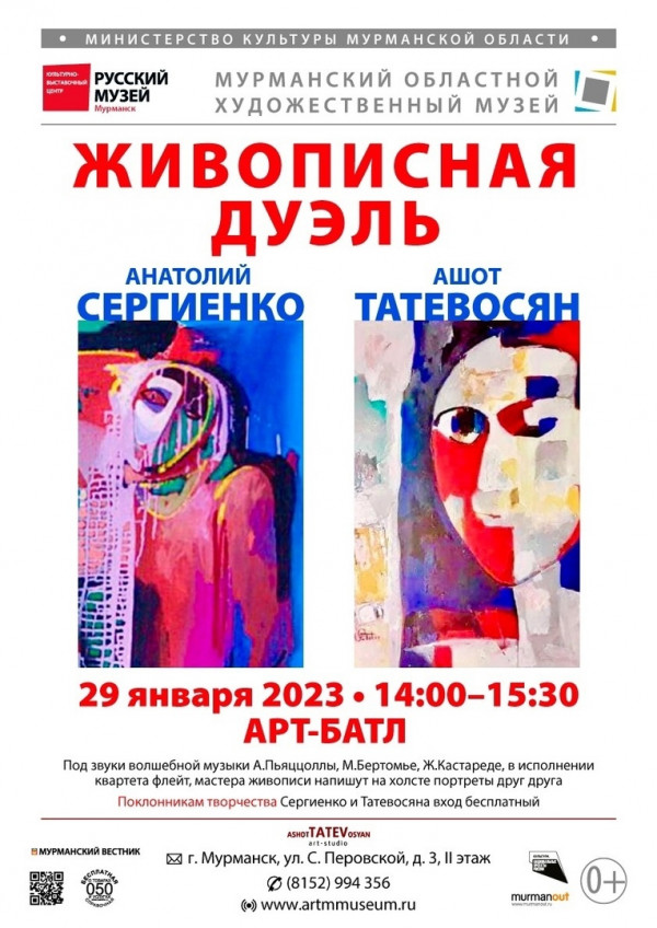 29 января в 14:00 Мурманский областной художественный музей приглашает на живописную дуэль между художниками Анатолием Сергиенко и Ашотом Татевосяном.