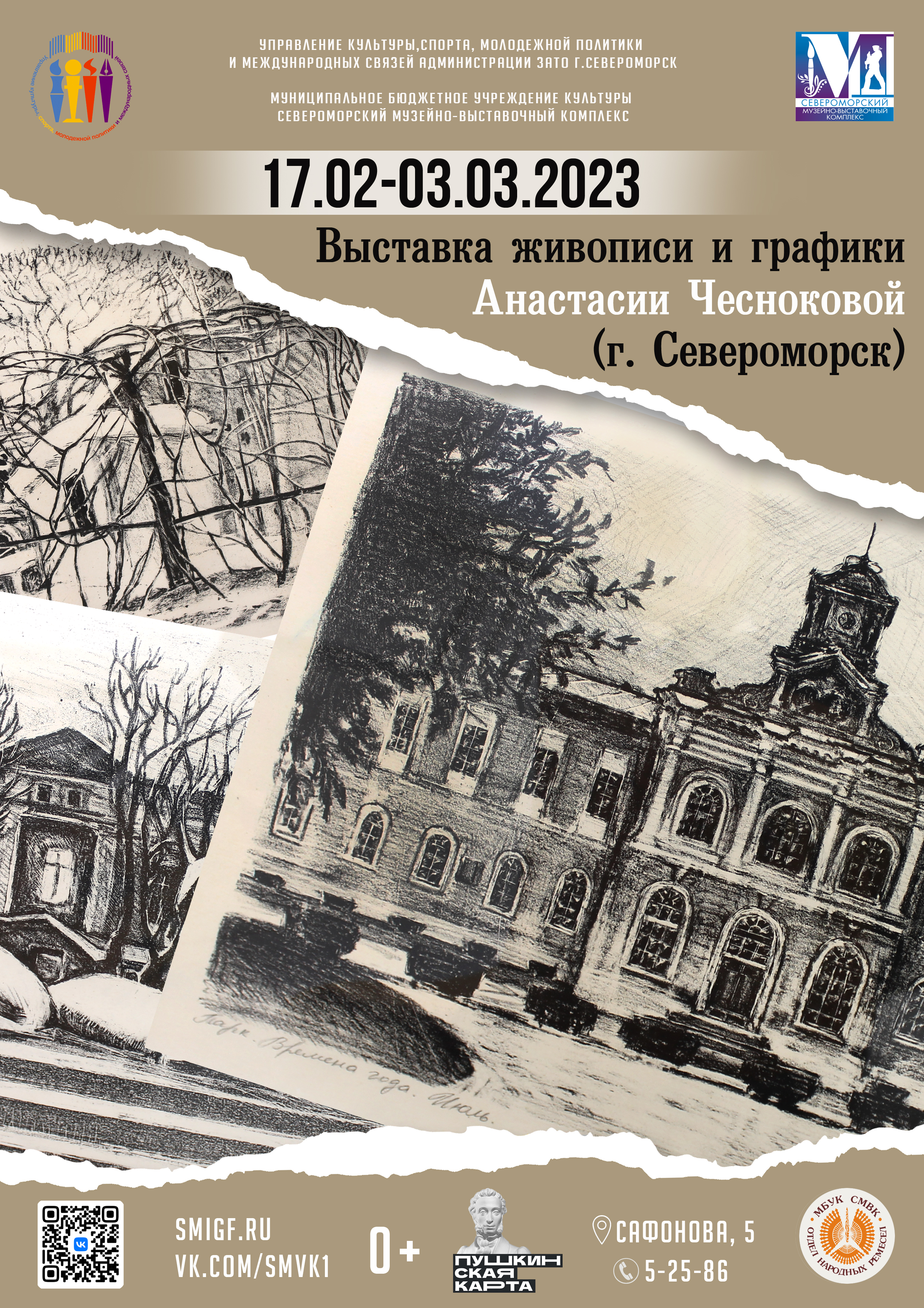 Приглашаем на открытие выставки! 19 февраля в 14 часов в зале временных выставок СМВК (Отдел ремёсел, ул. Сафонова, д.5, 1 этаж) состоится открытие ПЕРВОЙ ПЕРСОНАЛЬНОЙ ВЫСТАВКИ североморской художницы Анастасии Чесноковой.