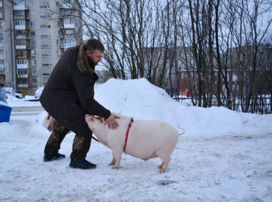 80-килограммовая свинья гуляет по улицам Мурманска