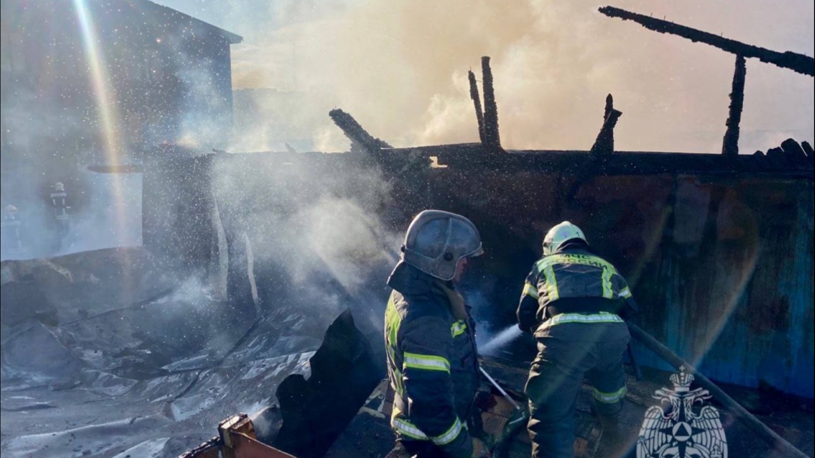 В результате происшествия сгорела часть хозяйственной постройки на площади 100 кв.м, сгорели личные вещи, огнем повреждена кровля, вскрыты две соседние постройки для контроля. Эвакуировано два газовых баллона.