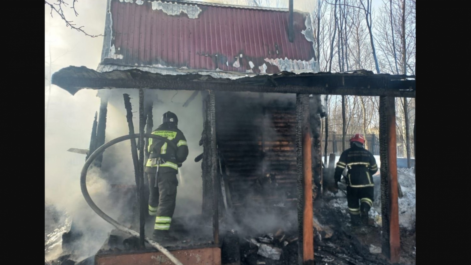 В результате пожара строение повреждено по всей площади 15 кв. м.