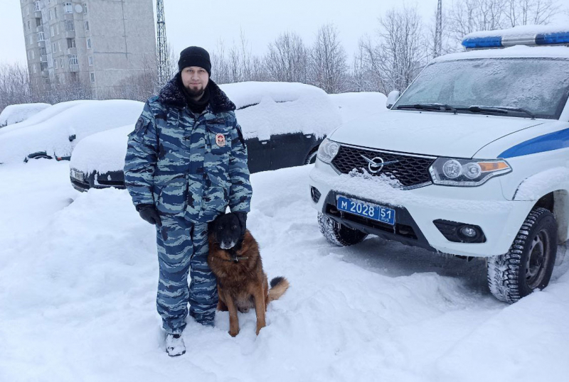 В Мурманской области служебная собака «по горячим следам» привела полицейских к квартире подозреваемого в совершении грабежа