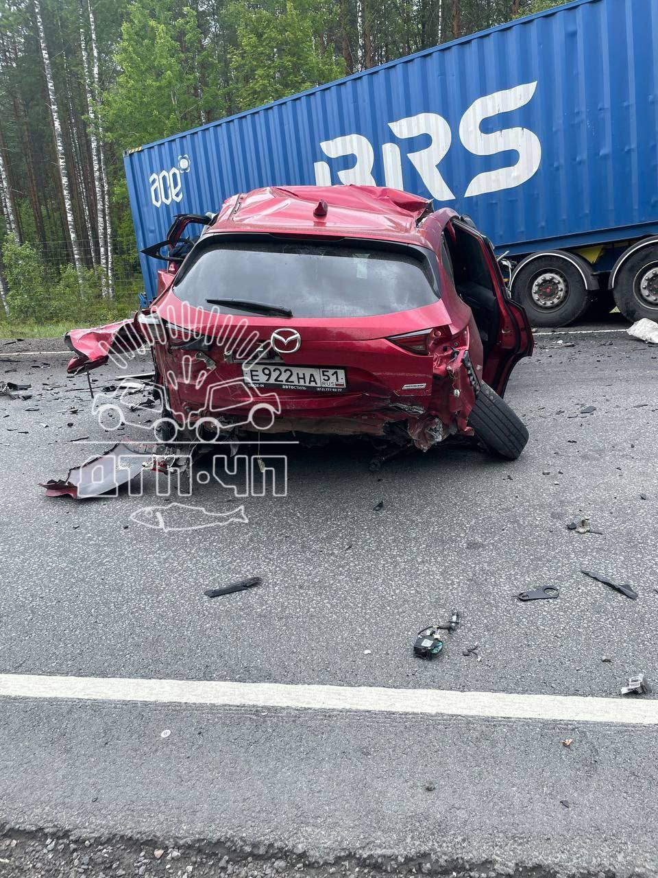 ДТП произошло на 200-м километре Мурманского шоссе. По предварительным данным, виновником аварии стал водитель Mazda с мурманскими номерами, который решился пойти на обгон.