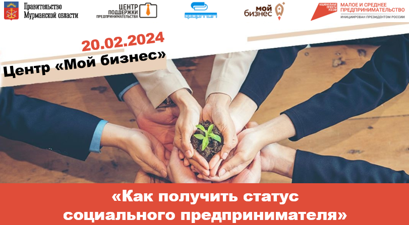20 февраля в Центре «Мой бизнес» состоится семинар «Как получить статус социального предпринимателя», организованный Центром поддержки предпринимательства Мурманской области.
