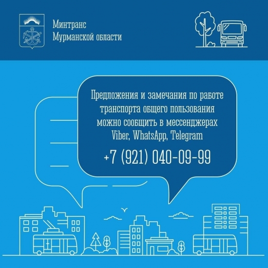 Мурманский оперативный штаб напоминает: в Минтрансе Мурманской области работает мессенджер-приемная по вопросам работы транспорта общего пользования.