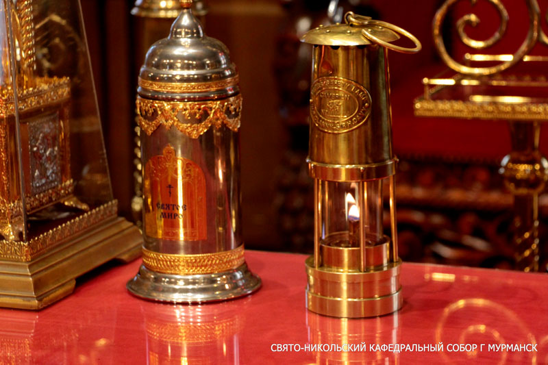 По традиции Благодатный огонь из Иерусалима, сошедший в Великую субботу в Храме Гроба Господня, в Мурманск доставил представитель Фонда Андрея Первозванного Эдуард Барахтин.