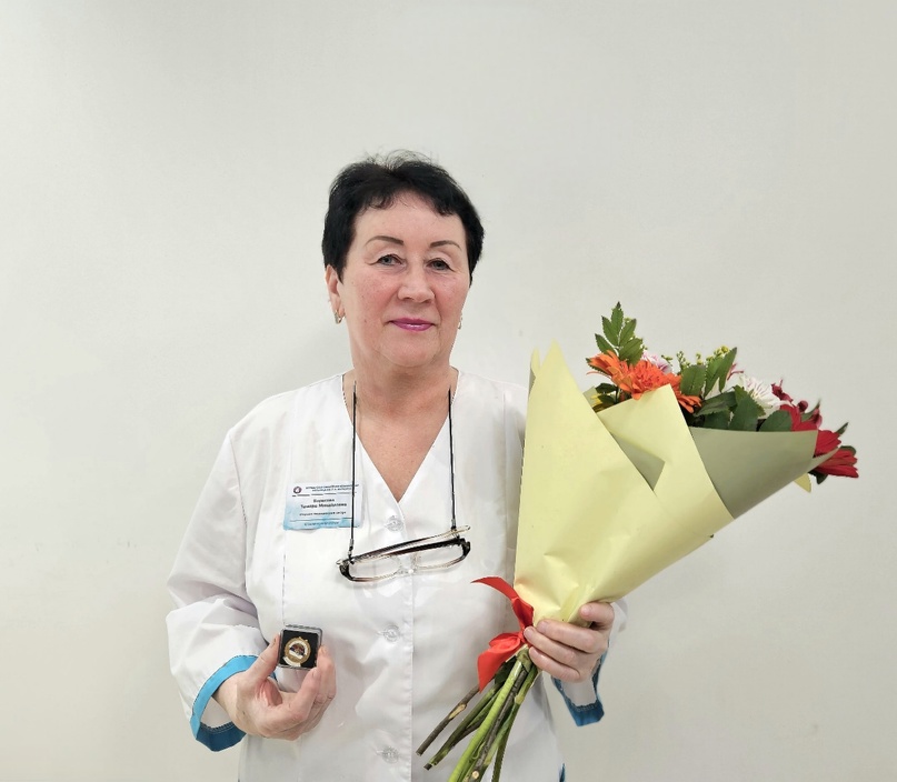 Награда вручена за многолетний плодотворный труд, профессиональное мастерство и высокие личные достижения в области здравоохранения. Стаж работы Тамары Михайловны 49 лет! В трудовой книжке единственное место работы - МОКБ им. П.А. Баяндина.