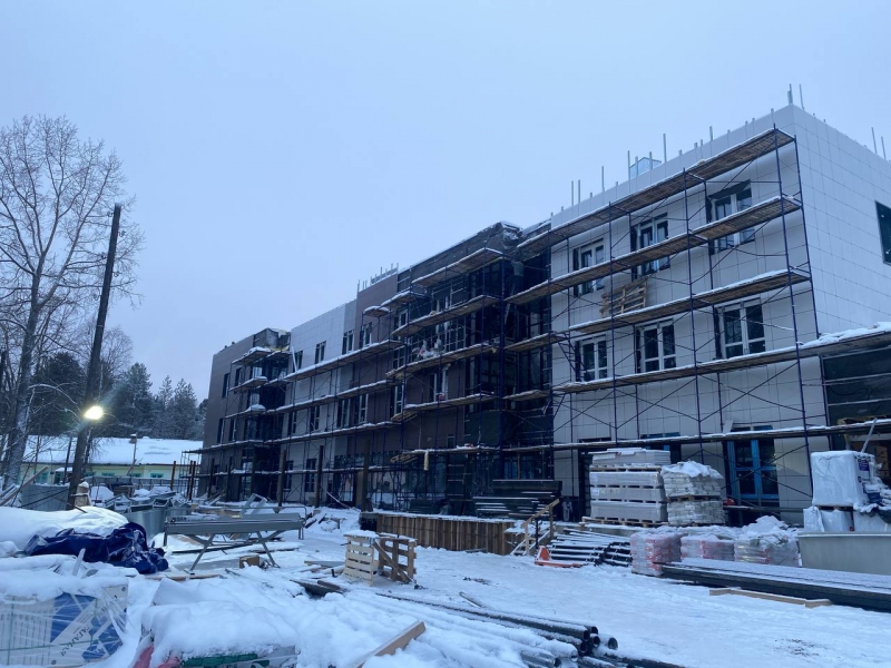 Строительства амбулатории с подстанцией скорой помощи и дневным стационаром в поселке Зеленоборский завершено на 60%, сообщает министерство здравоохранения Мурманской области.