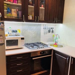 В квартире собственник в подарок оставляет: встроенный кухонный гарнитур со всей техникой, холодильник, микроволновую печь, угловой диван, шкаф-купе в коридоре и комнате, бойлер и ванный гарнитур, стиральную машину, тумбочку под тв и журнальный стол.